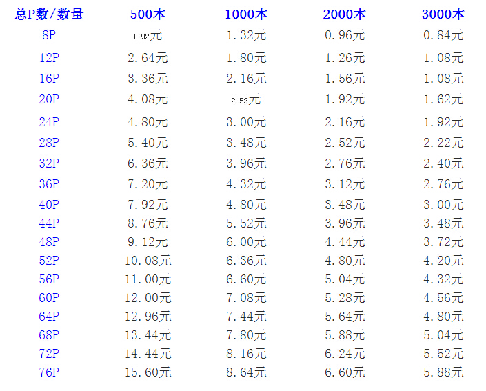 ★★★★★宣傳畫冊說明書部分價格表